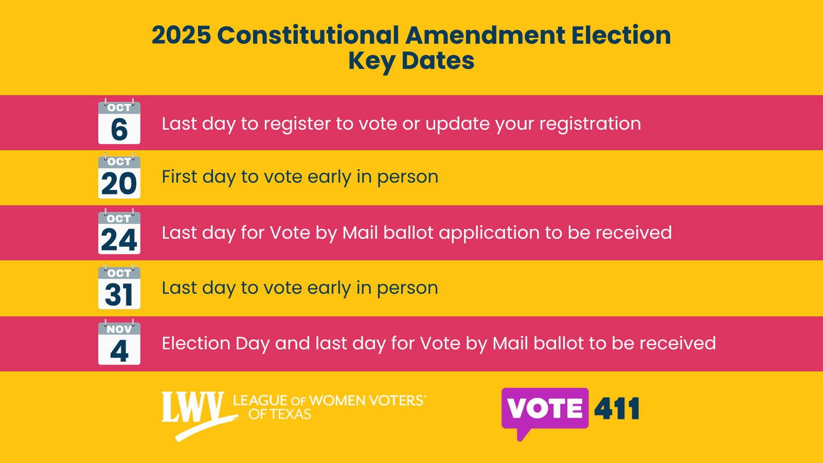 - Oct 6 Deadline to Register to Vote in November 2025 Election