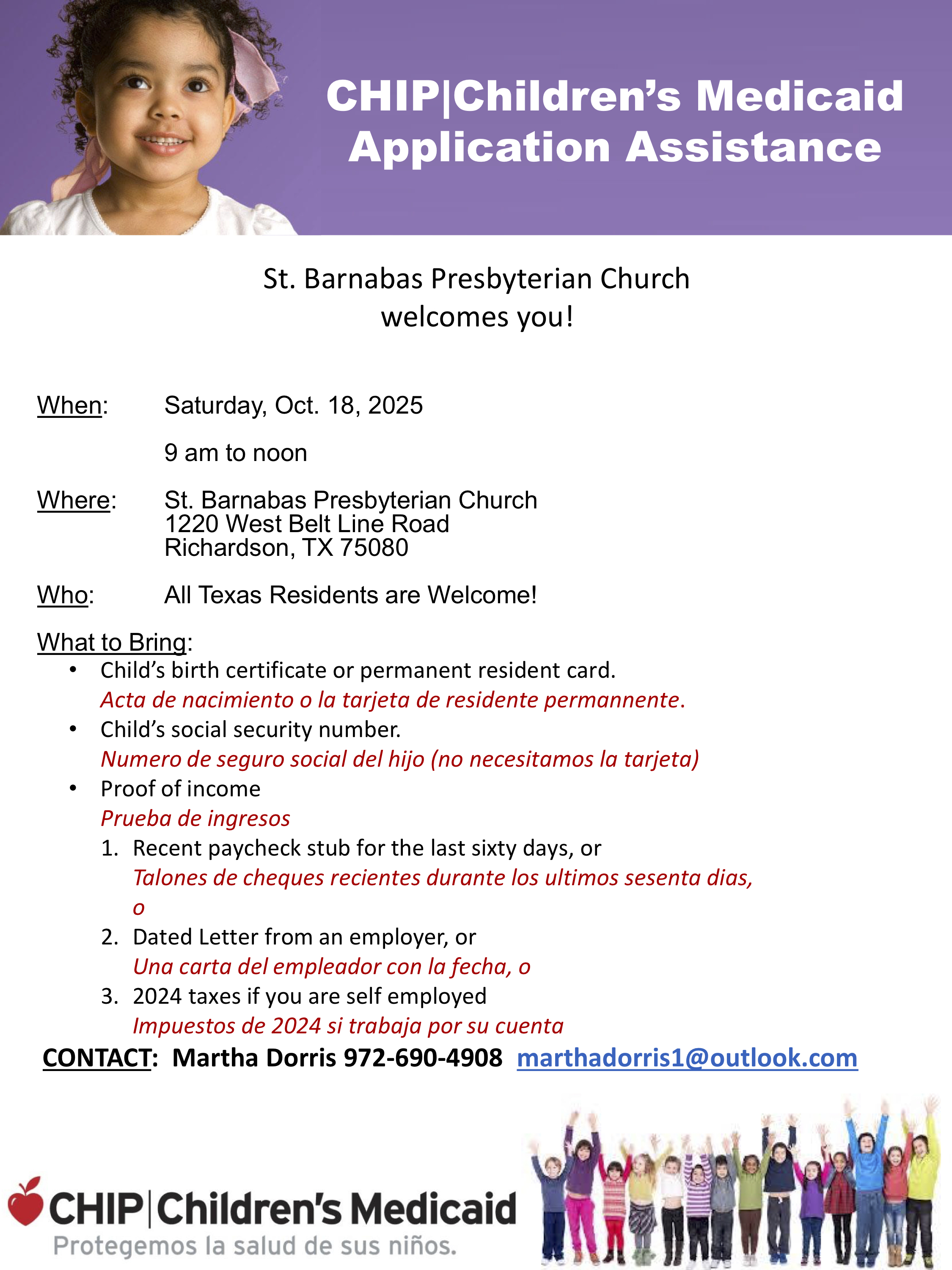 - Application forms in English and Spanish are available. If you need paper forms, please contact Martha Dorris at 972-690-4908 or marthadorris1@outlook.com.