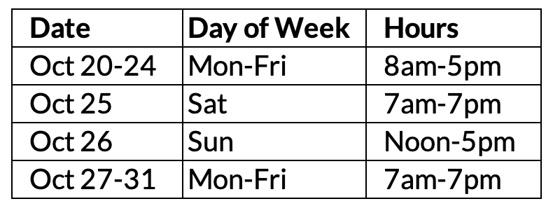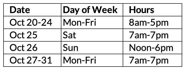 * To be counted, Ballots by Mail must be postmarked by 7 p.m. on Election Day (Nov. 4, 2025) if carrier envelope is not postmarked, OR Wednesday, November 5, 2025 (next business day after Election Day) at 5:00 p.m. if carrier envelope is postmarked by 7:00 p.m. at the location of the election on Election Day. Go to the