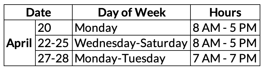 Voting on Election Day is 7am – 7pm.