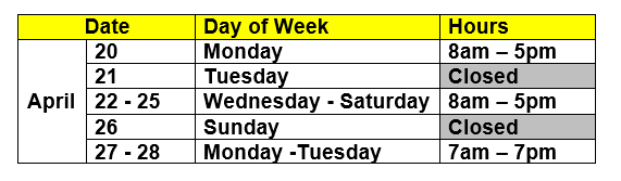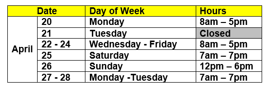 Voting on Election Day is 7am – 7pm.